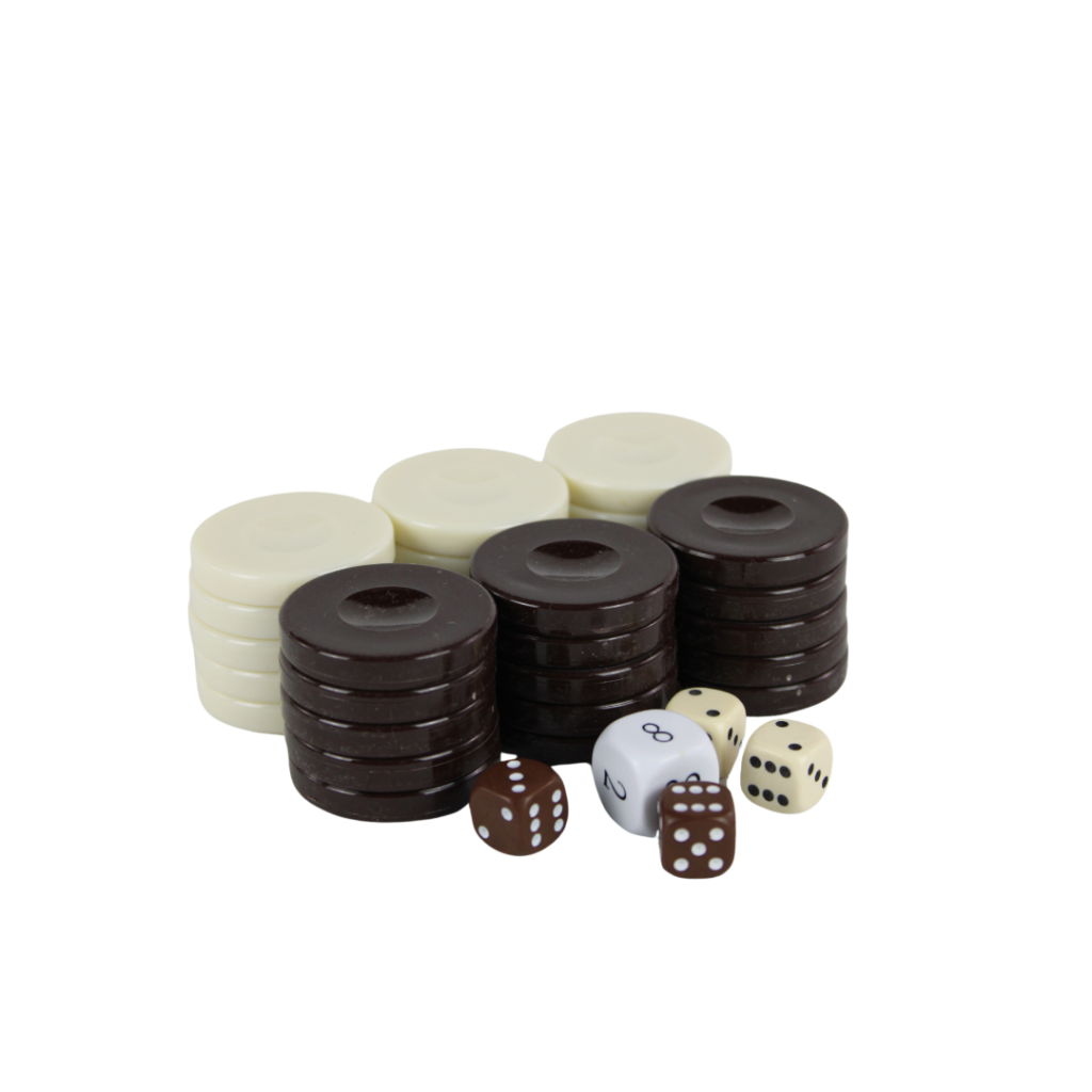 Brown Backgammon Pieces set includes:
