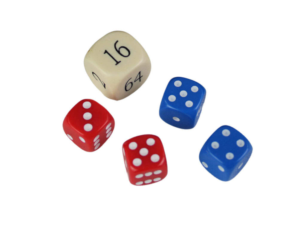 Replacement Backgammon Dice Set – Cream Doubling Cube – Red & Blue Dices