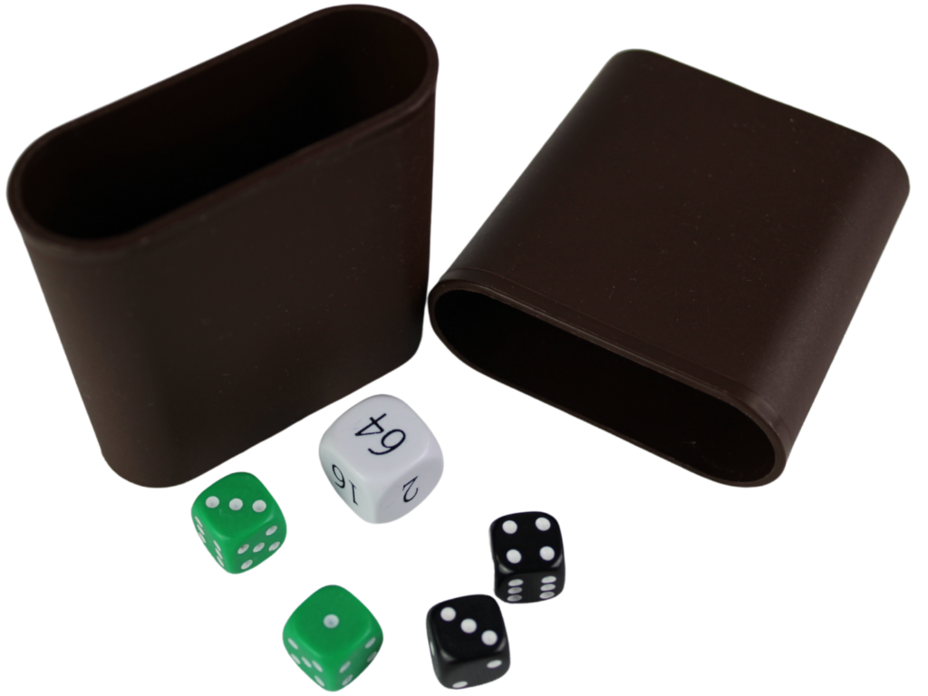 Enhance your backgammon experience with this replacement dice set. Includes two brown dice cups for quiet, controlled rolls and a stylish White doubling cube (2-64). Comes with four precision dice in green and black. Perfect for replacing worn pieces or upgrading your game. Durable, elegant, and ideal for players of all levels.