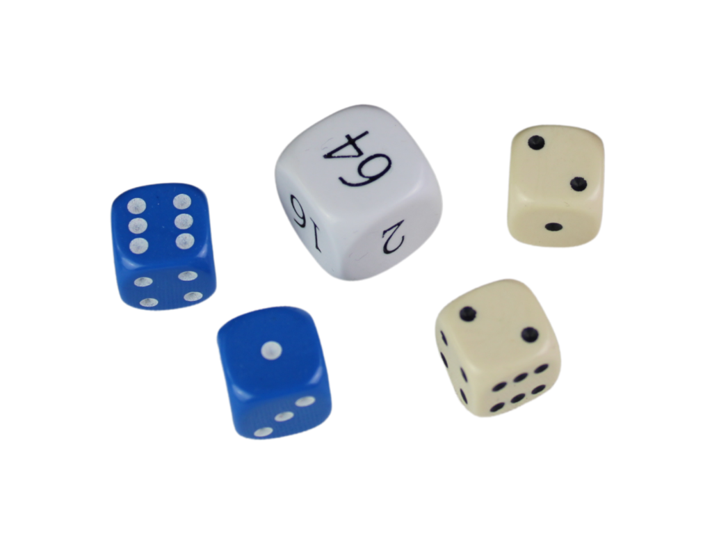 Replacement Backgammon Dice Set – White Doubling Cube – Cream & Blue Dices