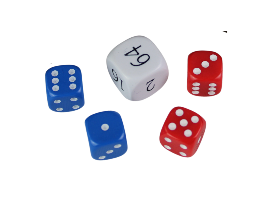 Replacement Backgammon Dice Set – Cream Doubling Cube – Red & Blue Dices