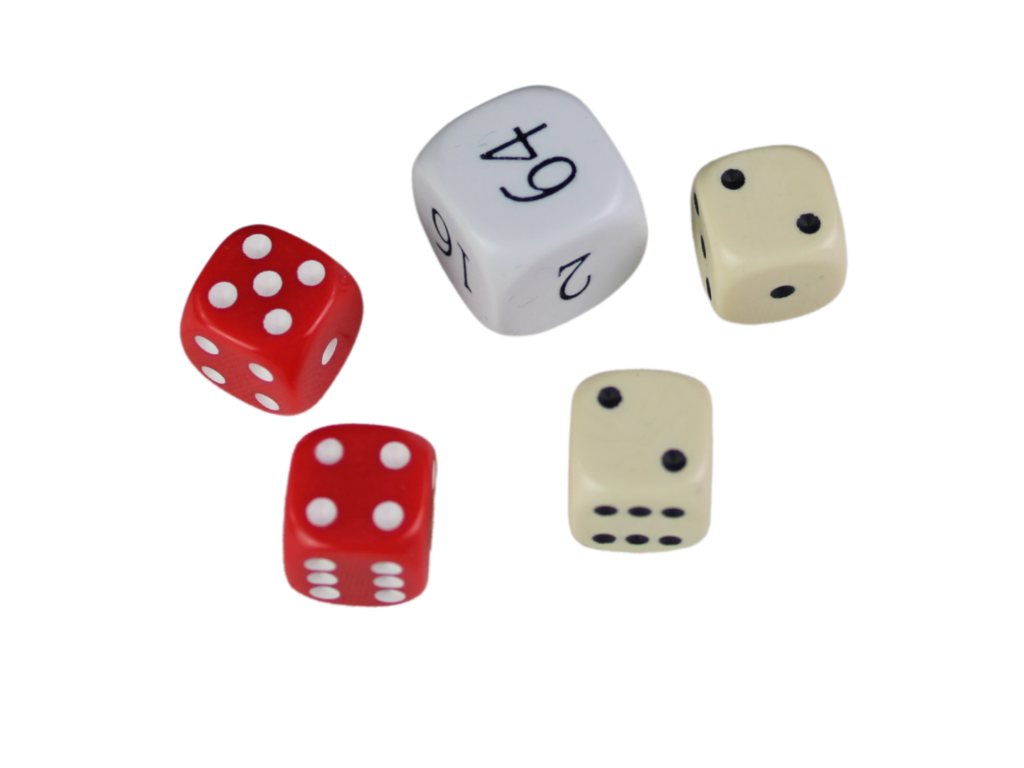 Replacement Backgammon Dice Set – White Doubling Cube – Red & Cream Dices