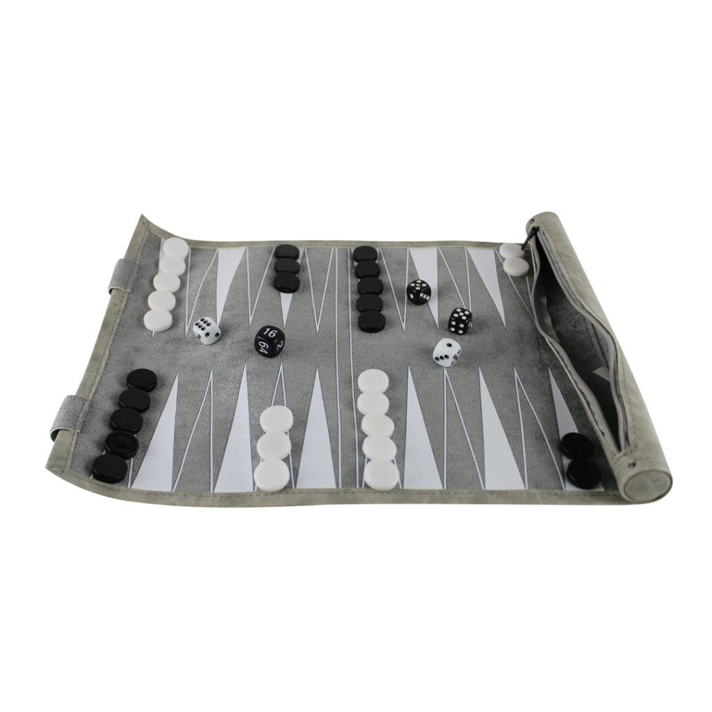 Gray Travel Roll Up Backgammon Set 13 Inch