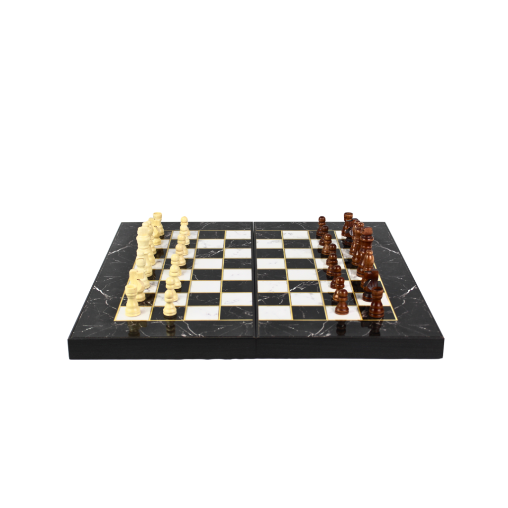 Wooden Black Marble Design Chess & Backgammon Set 19 Inch