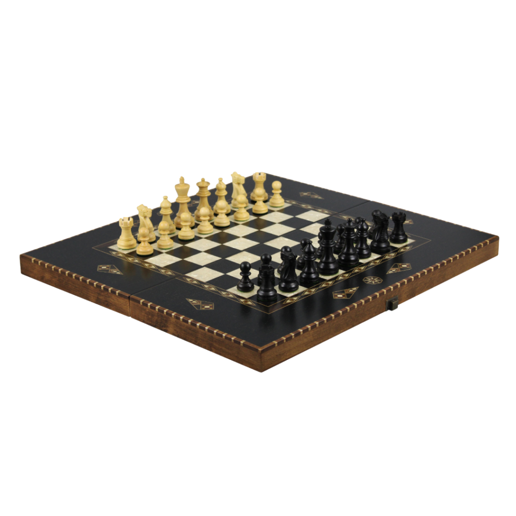 Helena Rural Ebony Chess & Backgammon Set With Ebonised Classic Staunton Chess Pieces 20 Inch