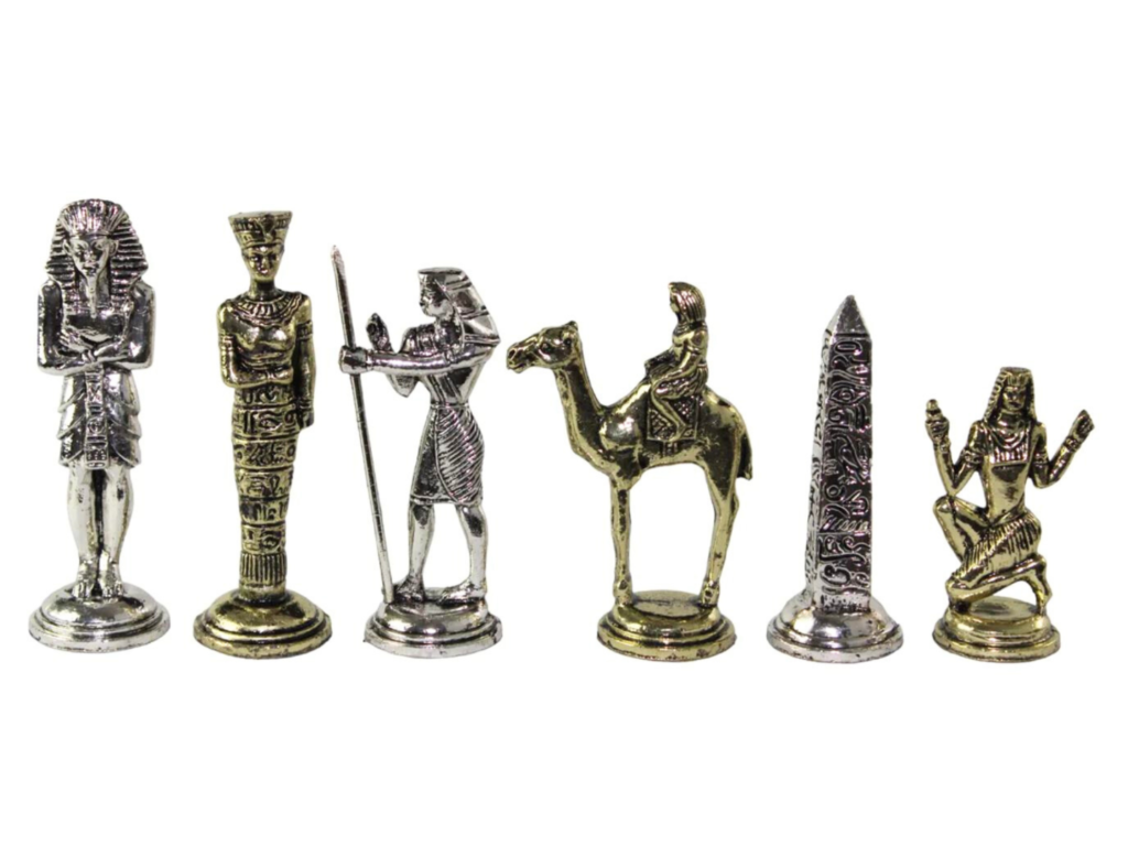 Egyptian Metal Chess Pieces Nickel & Brass 3.8 Inch