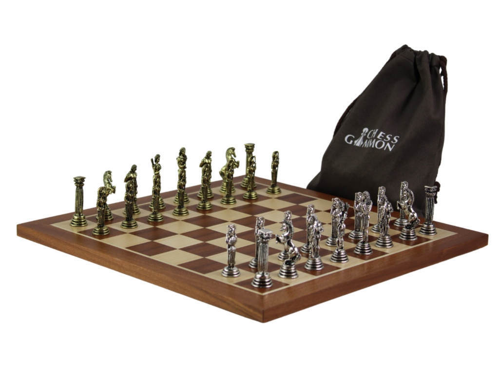 Mahogany Personalised Metal Chess Set with Drawstring Bag 14 Inch