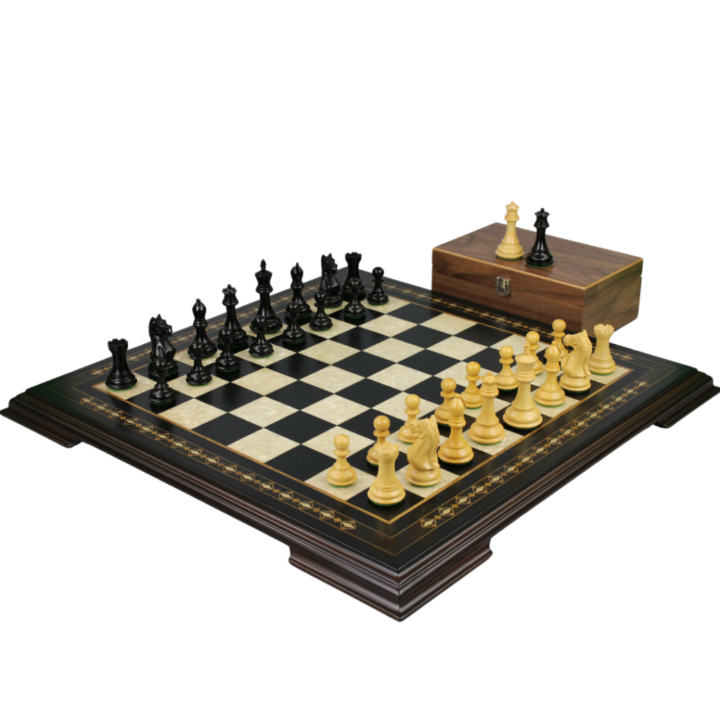 Ebony Chess Set 20 Inch with Helena Chess Board and Weighted Ebonised Fierce Knight(Queens Gambit) Staunton Chess Pieces 3.75 Inch