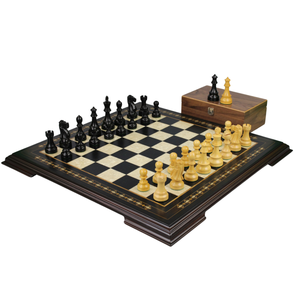 Ebony Chess Set 20 Inch With Helena Chess Board and Weighted Ebonised Reykjavik Staunton Chess Pieces 3.75 Inch
