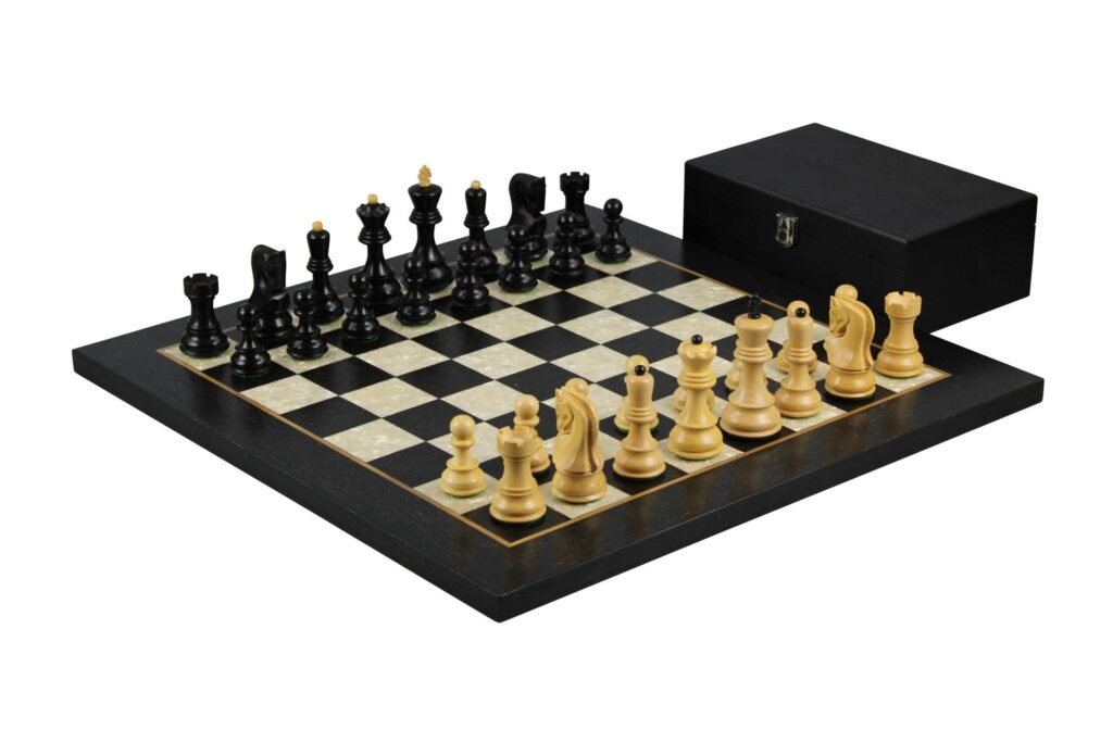 Ebony Chess Set 20 Inch With Helena Flat Chess Board and Weighted Ebonised Zagreb Staunton Chess Pieces 3.75 Inch