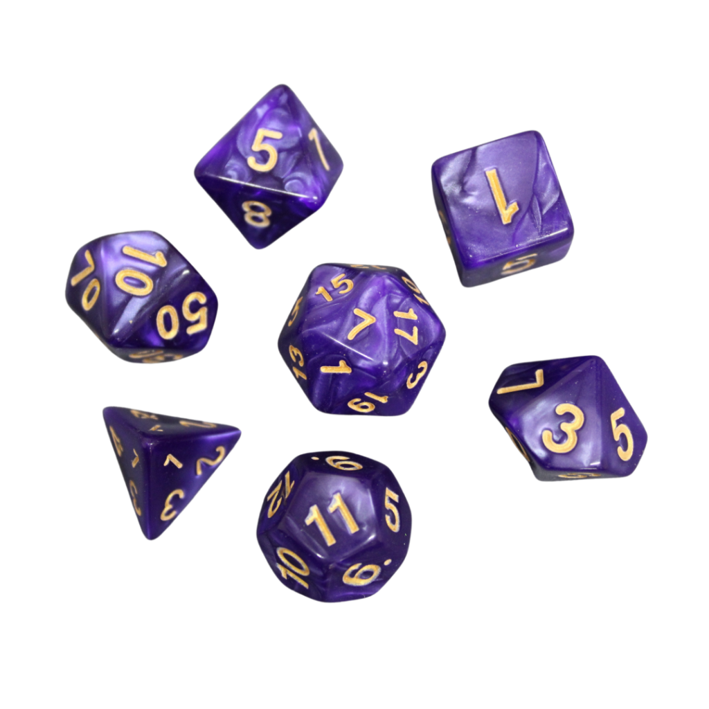 Crafted with a marbled blend of Amethyst Purple and deep swirls, each die captures the look of liquid gold frozen in time. The engraved numbers are bold and easy to read, ensuring precision in every game. Whether you’re casting spells, battling dragons, or exploring dungeons, these dice provide a reliable and stylish companion for every adventure.