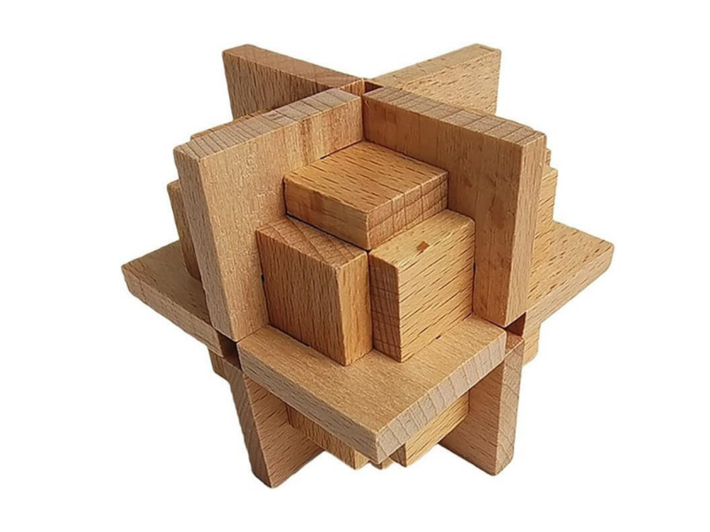 Crosshair Lock Kongming Lock is a classic brain teaser puzzle crafted from solid wood, designed to challenge and stimulate the mind. This intricate puzzle consists of interlocking wooden pieces that must be carefully arranged to unlock the solution. Perfect for puzzle enthusiasts of all ages, it promotes problem-solving skills, patience, and critical thinking. Its durable wooden construction ensures long-lasting use, while the compact size makes it an ideal companion for travel or home entertainment. A timeless puzzle that brings fun and mental exercise to any setting!