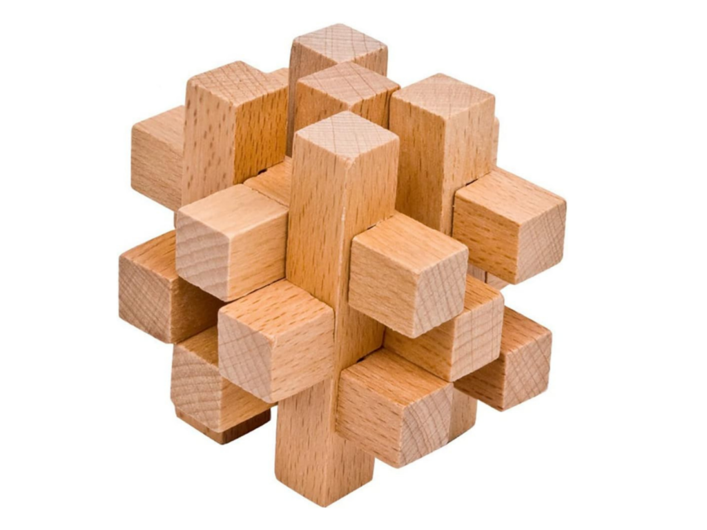 Fourteen Roots Kongming Lock is a classic brain teaser puzzle crafted from solid wood, designed to challenge and stimulate the mind. This intricate puzzle consists of interlocking wooden pieces that must be carefully arranged to unlock the solution. Perfect for puzzle enthusiasts of all ages, it promotes problem-solving skills, patience, and critical thinking. Its durable wooden construction ensures long-lasting use, while the compact size makes it an ideal companion for travel or home entertainment. A timeless puzzle that brings fun and mental exercise to any setting!