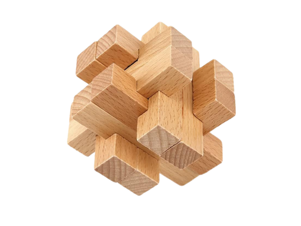 The Treasure Cage Kongming Lock is a classic brain teaser puzzle crafted from solid wood, designed to challenge and stimulate the mind. This intricate puzzle consists of interlocking wooden pieces that must be carefully arranged to unlock the solution. Perfect for puzzle enthusiasts of all ages, it promotes problem-solving skills, patience, and critical thinking. Its durable wooden construction ensures long-lasting use, while the compact size makes it an ideal companion for travel or home entertainment. A timeless puzzle that brings fun and mental exercise to any setting!