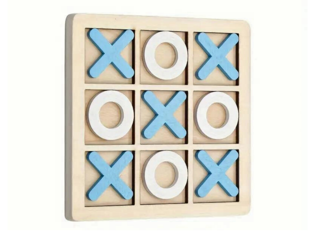 Blue Wooden Noughts & Crosses, Tic Tac Toe, 3 In a Row Family Game Set